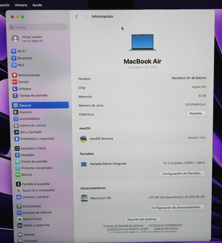·         MacBook Air de 15.3 pulgadas con Chip M3 de Apple